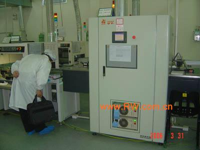 PCB电子保护胶光固化现场,1999年早期产品,此工艺在PCB制程上具有代表性,经过三次升级,从传统的UV光源过到无极灯光源,最后采用RUNWING 自主研发的DICHROIC光学系统配套进口UV光源,设备的传输采用是链条导轨方式,轨道的宽度可以自由调节,适合与PCB不同规格配套.特点:人机界面控制、自动化程度高、高强度、低温、连续运行的可靠性高。