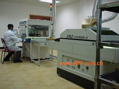 1999年PCB产品应用现场(ZBZ-UVA500-2型):与自动涂覆机配套的是平面输送带式UV设备,采用光源:UV高压汞灯